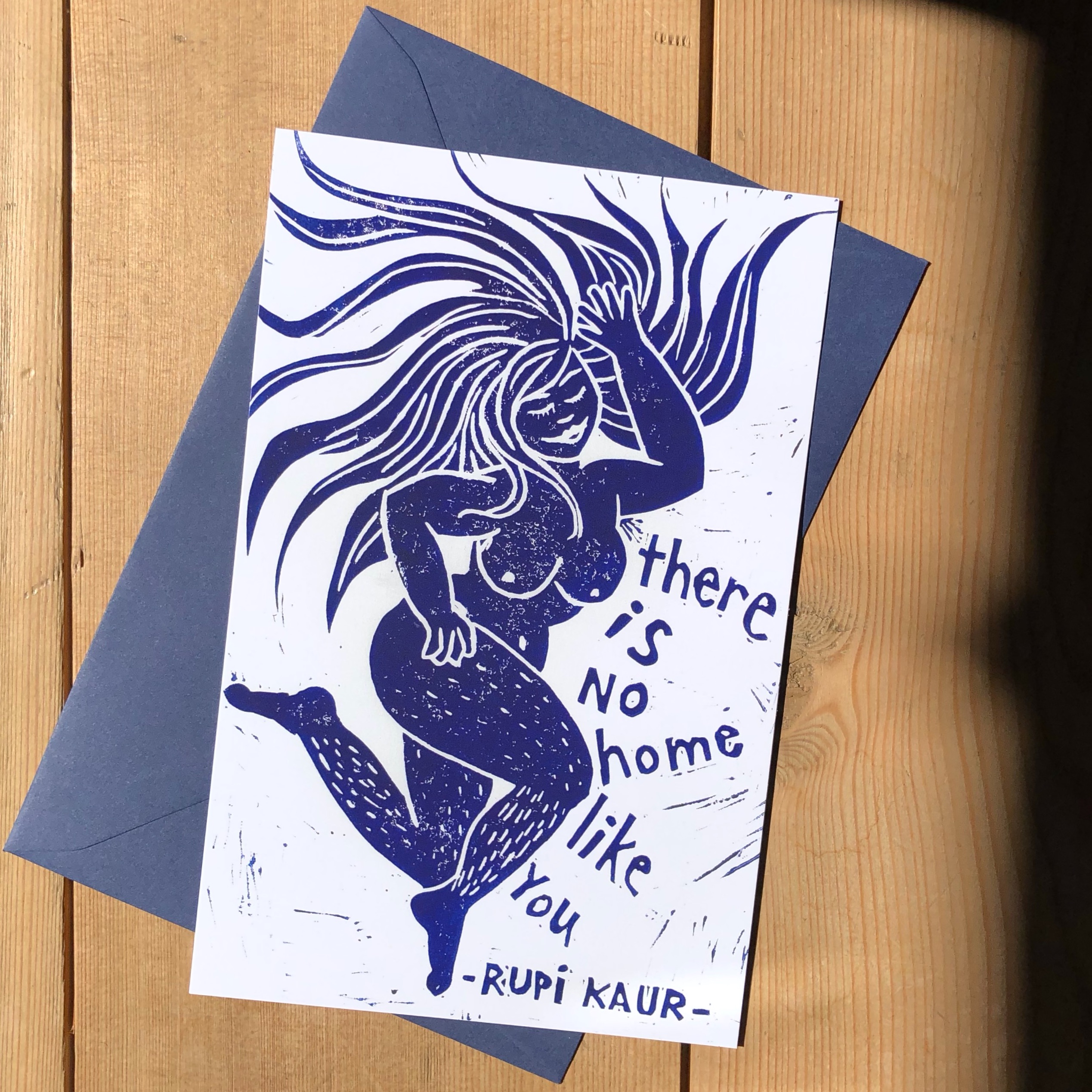 Reproduction sur papier mat d'une linogravure. Phrase de la poétesse Rupi Kaur.